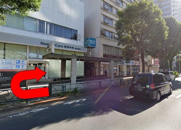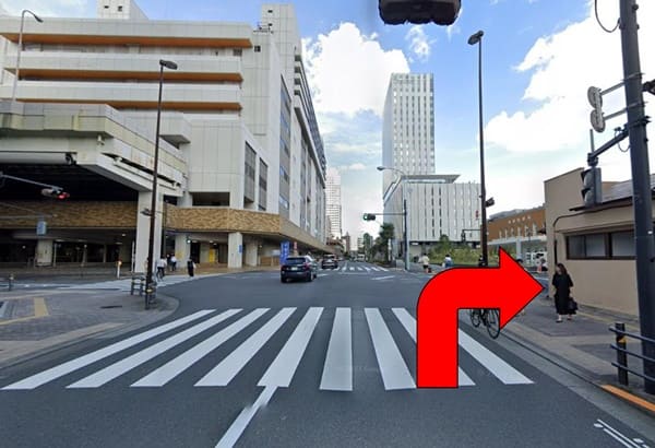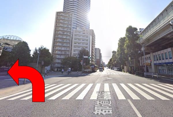 直進して横断歩道を渡り、今度は左に曲がって道なりに進みましょう。