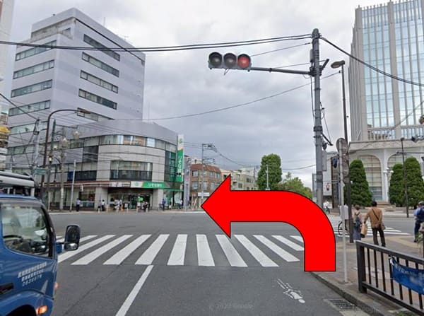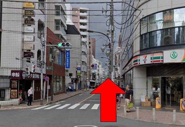 そして、今度は左を向いて横断歩道を渡り、セブンイレブンとりそな銀行のある方に行きましょう。