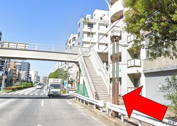 そのまま歩いていくと歩道橋があるので、歩道橋の横を通り過ぎます。