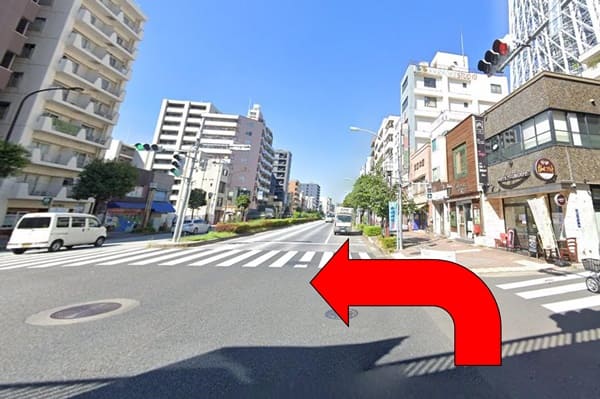 まず最初に押上駅(スカイツリー前駅)のA2出口を出て、右方向に進みましょう。