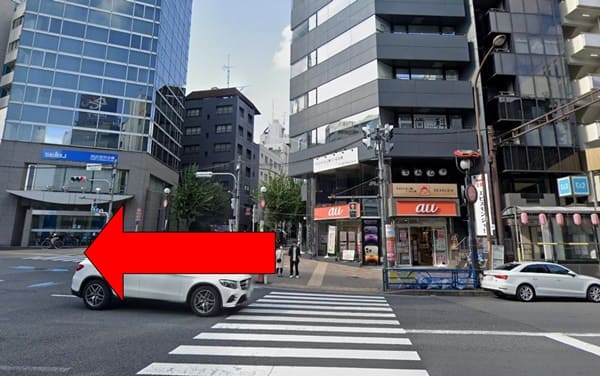 そのまま目の前の横断歩道を渡り、道なりに進みましょう。