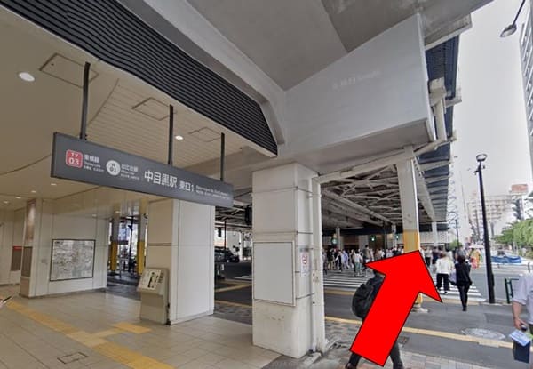 まずは中目黒駅の東口1を出て、目の前にある横断歩道を渡りましょう。