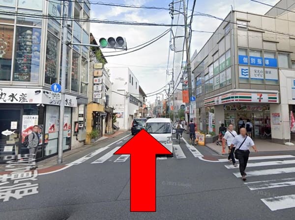 セブンイレブンのある交差点を通り過ぎ、さらに真っ直ぐ歩きましょう。