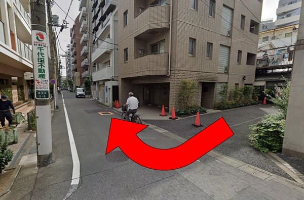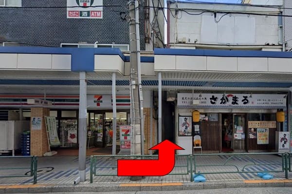 少し狭いですが、セブンイレブンの横から細い路地に入れるので、路地に入りましょう。